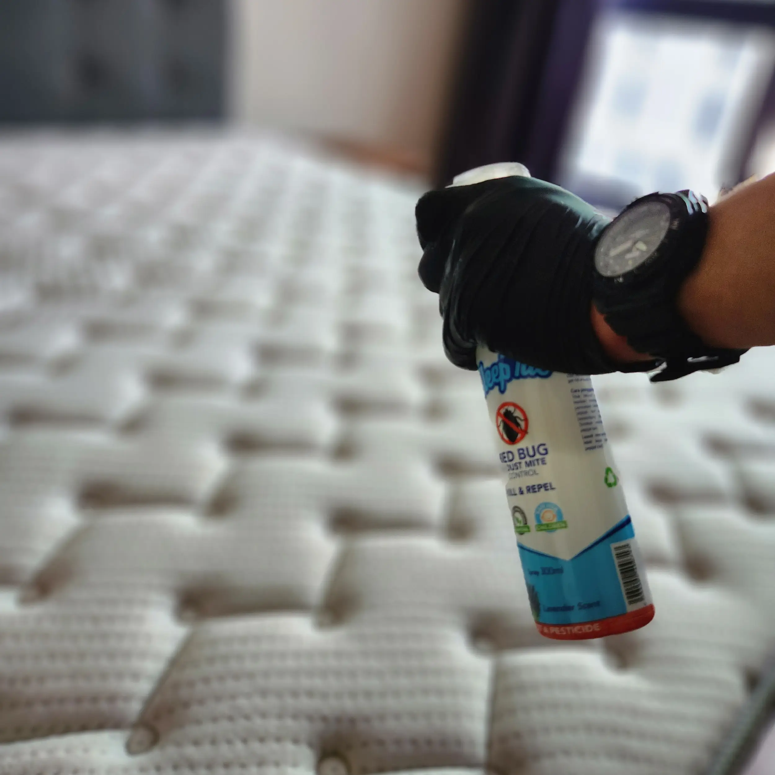 To finish, we apply a bed bug treatment spray that prevents the infestation of bed bugs. This eco-friendly solution targets and repels these pests, keeping your bed secure from harmful critters.